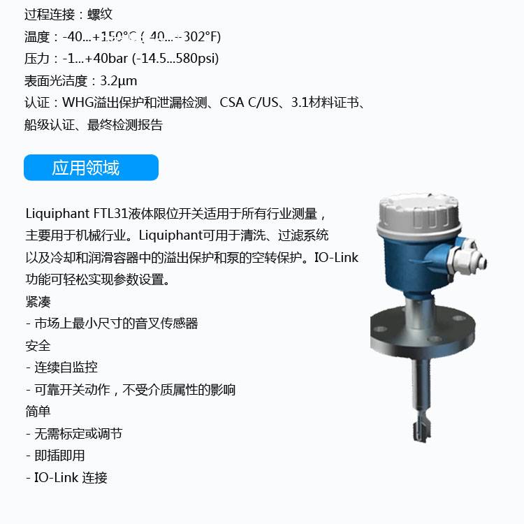 E+H音叉限位开关 FTL31-AA4M2AAWBJ 经济型可选卫生型